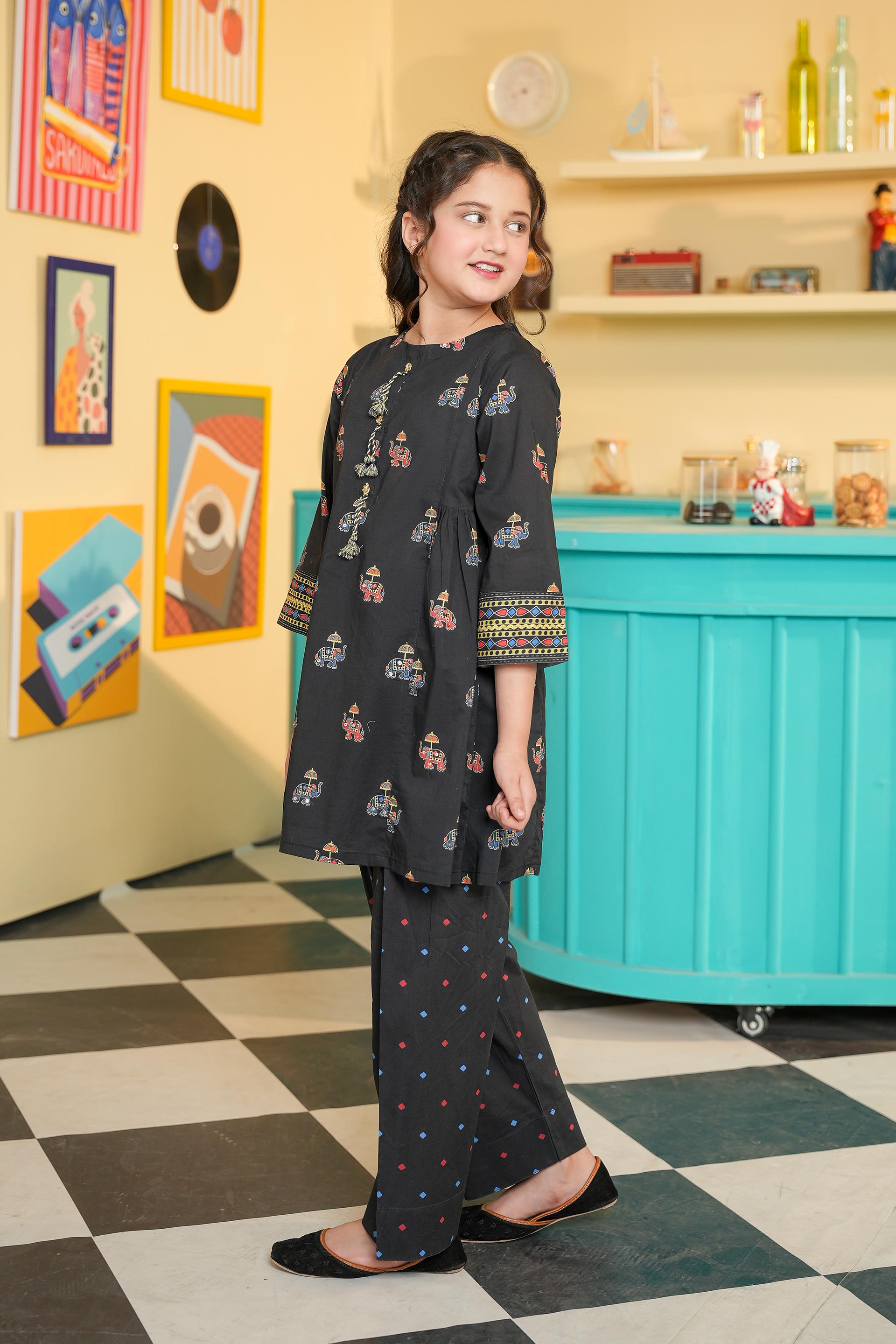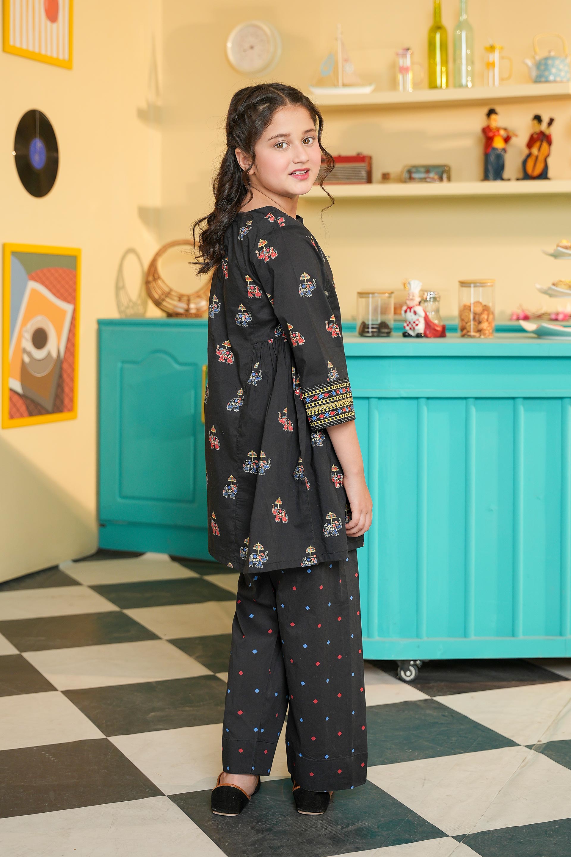 Printed Frock With Farshi Shalwar (DGKS-208)