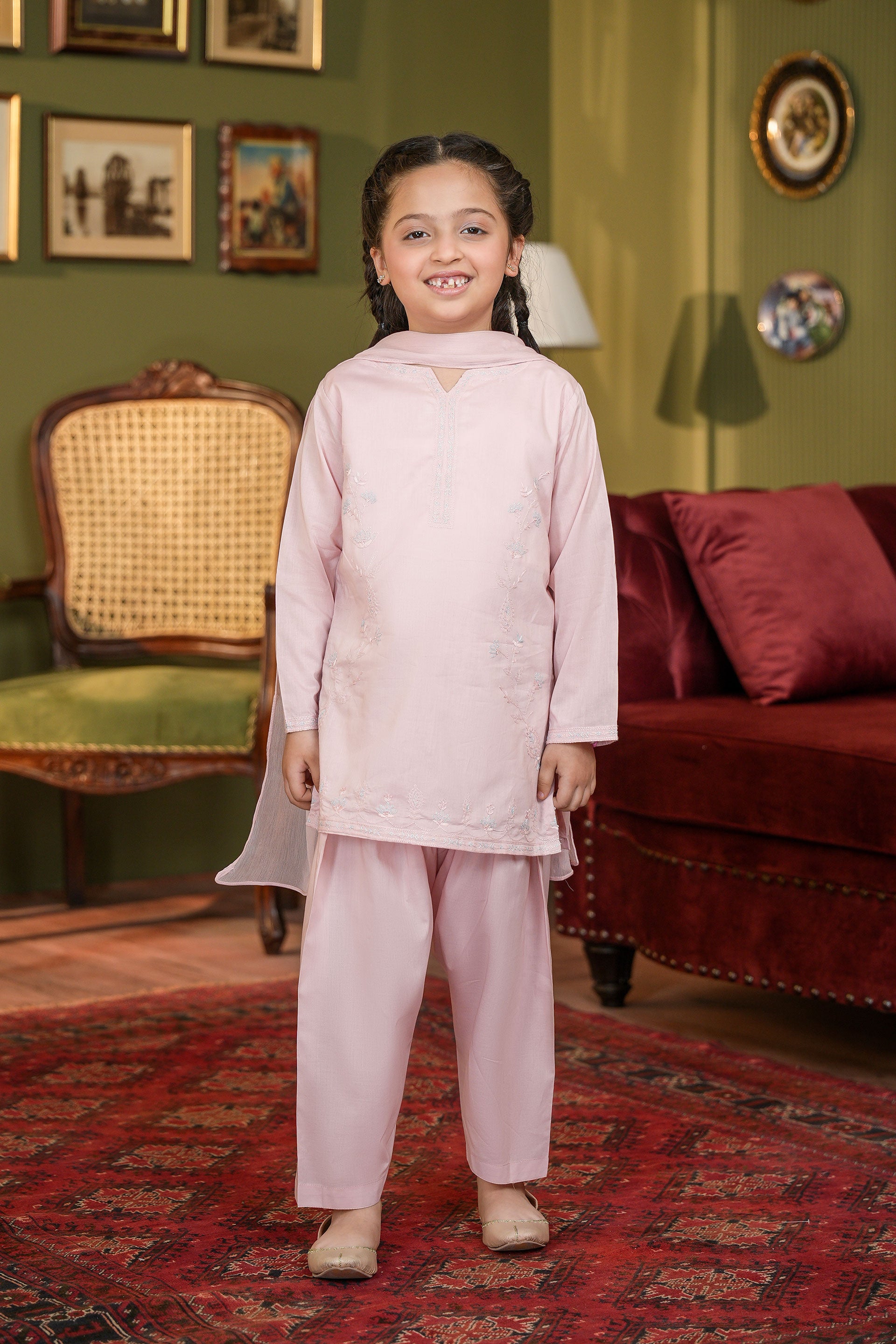 Details: Hand Embroidered Kameez Shalwar And Dupatta