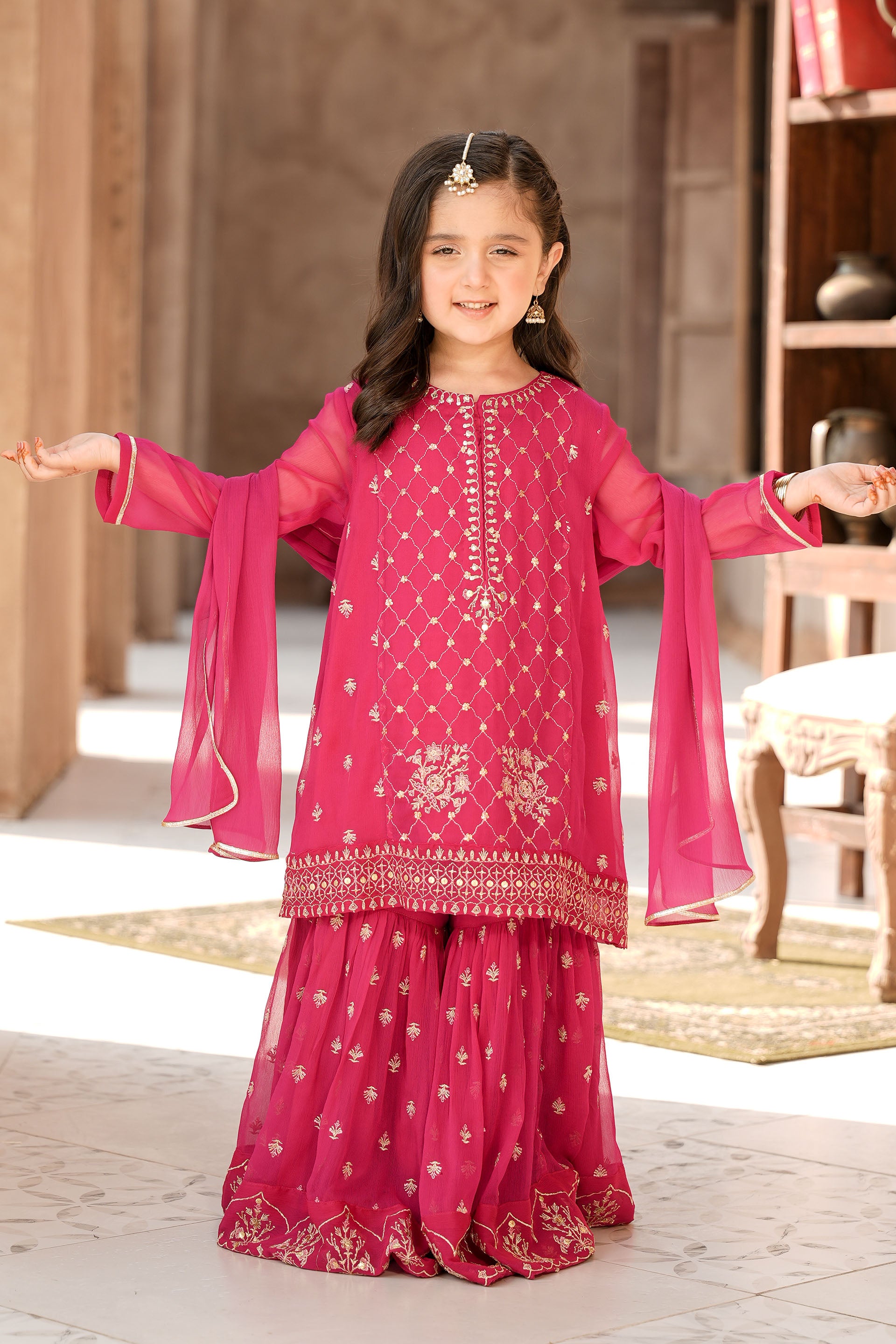 Embellished Kameez & Gharara With Dupatta (GPW-1150)