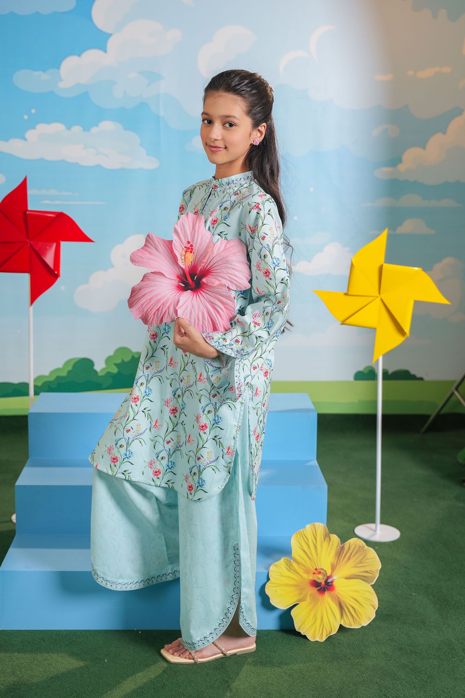 Embroidered Kali Dar Shirt With Straight Pants (DGFS-49)