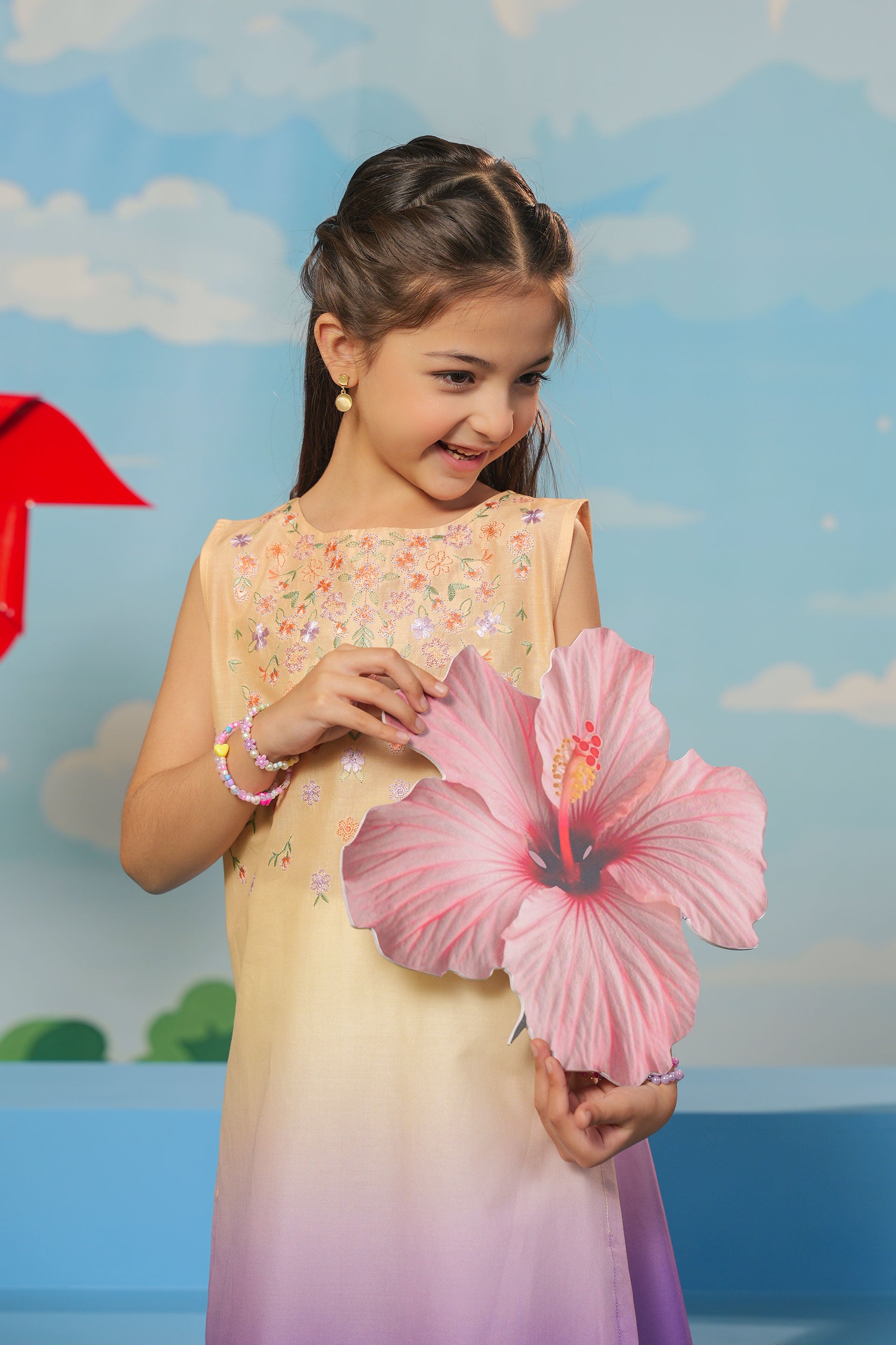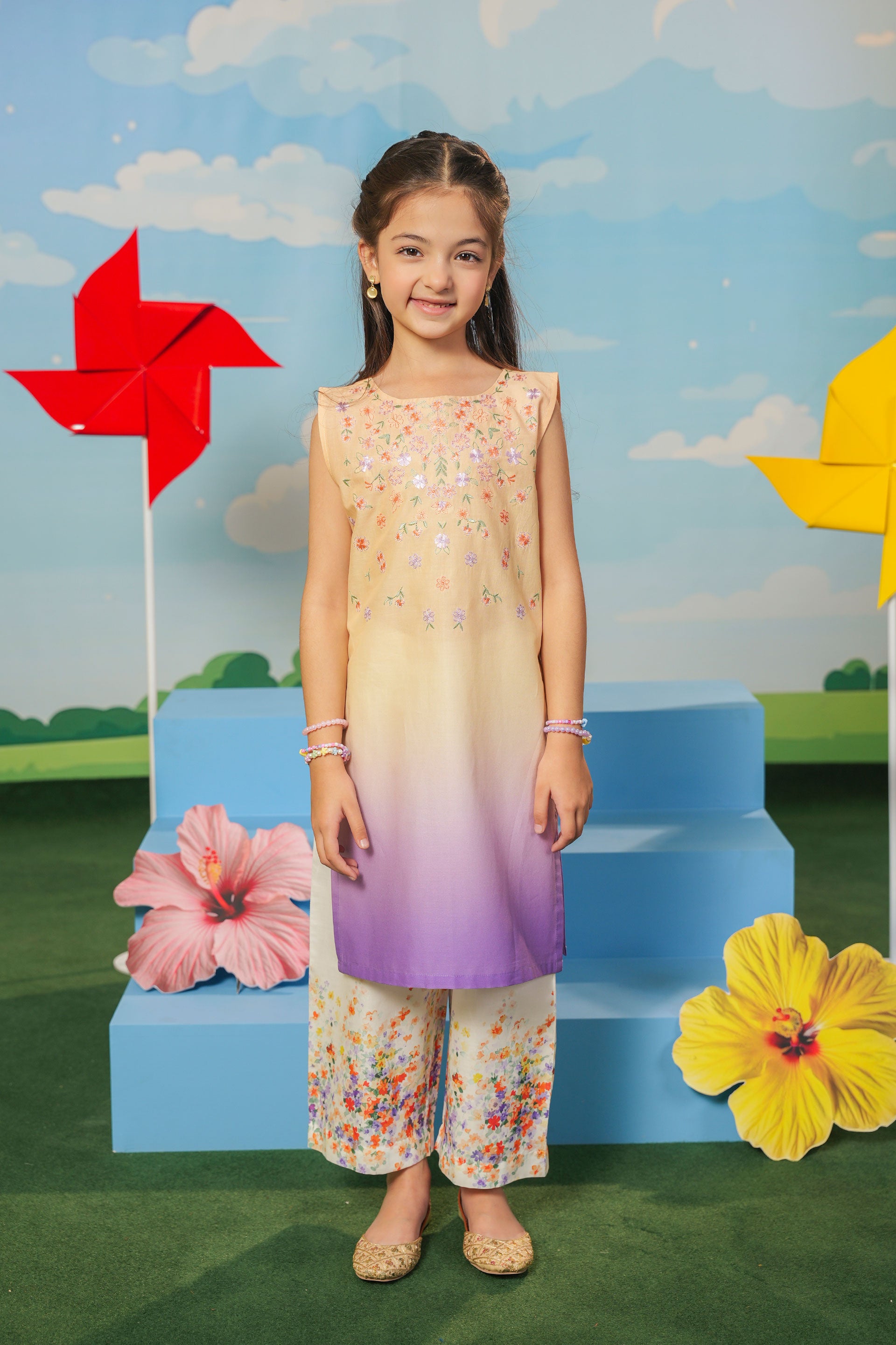 Embroidered Frock With Slip And Trouser (DGFS-45)
