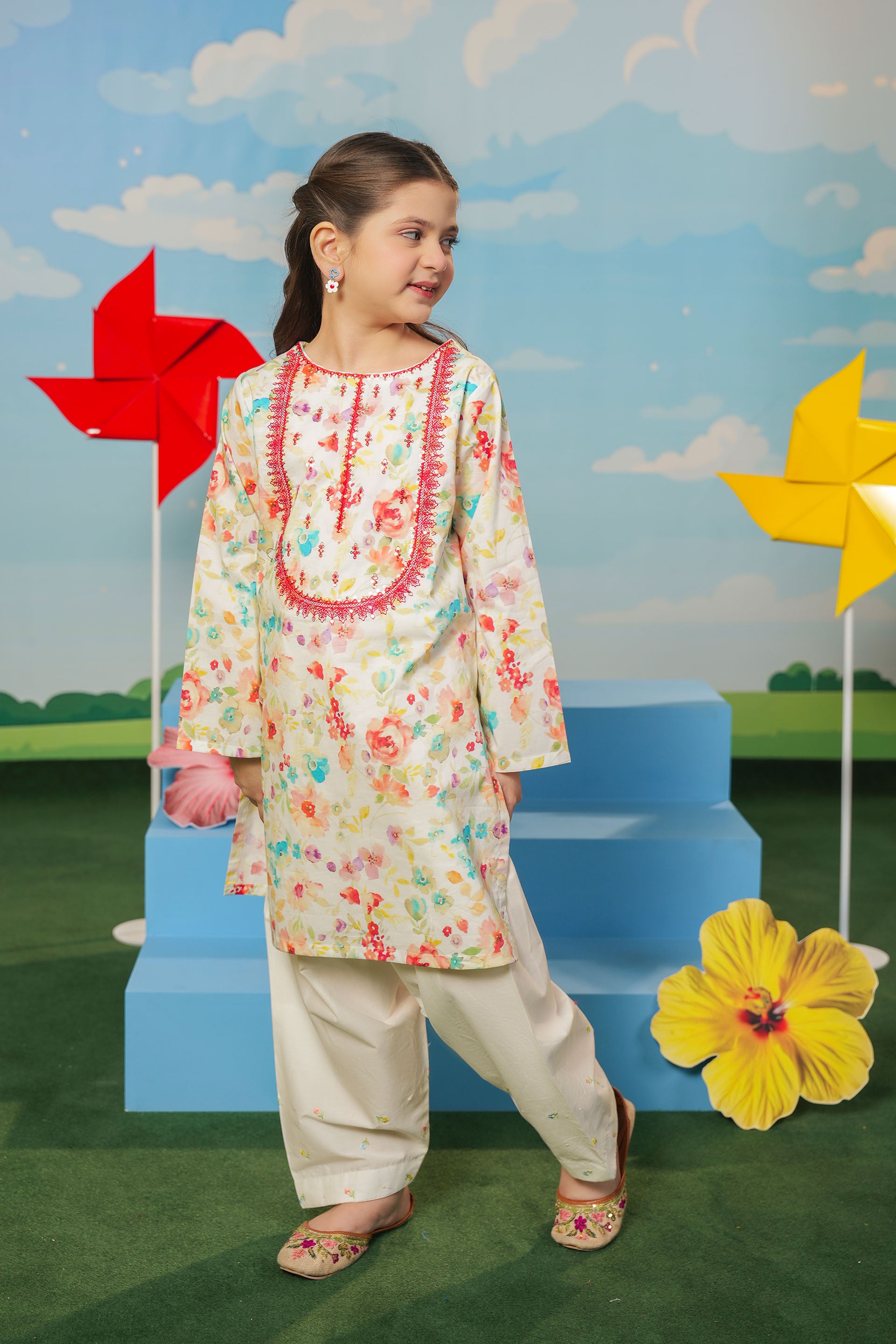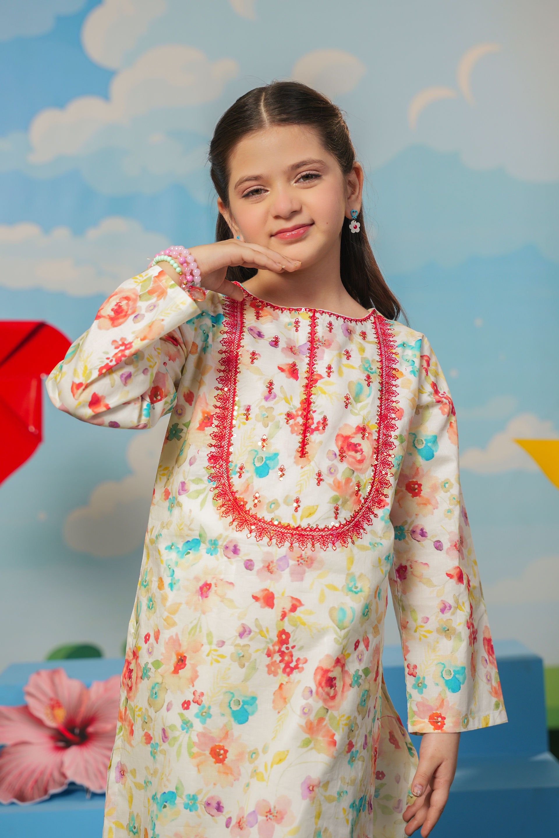 Embroidered Rangeen Kurti With Shalwar (RGKS-36)